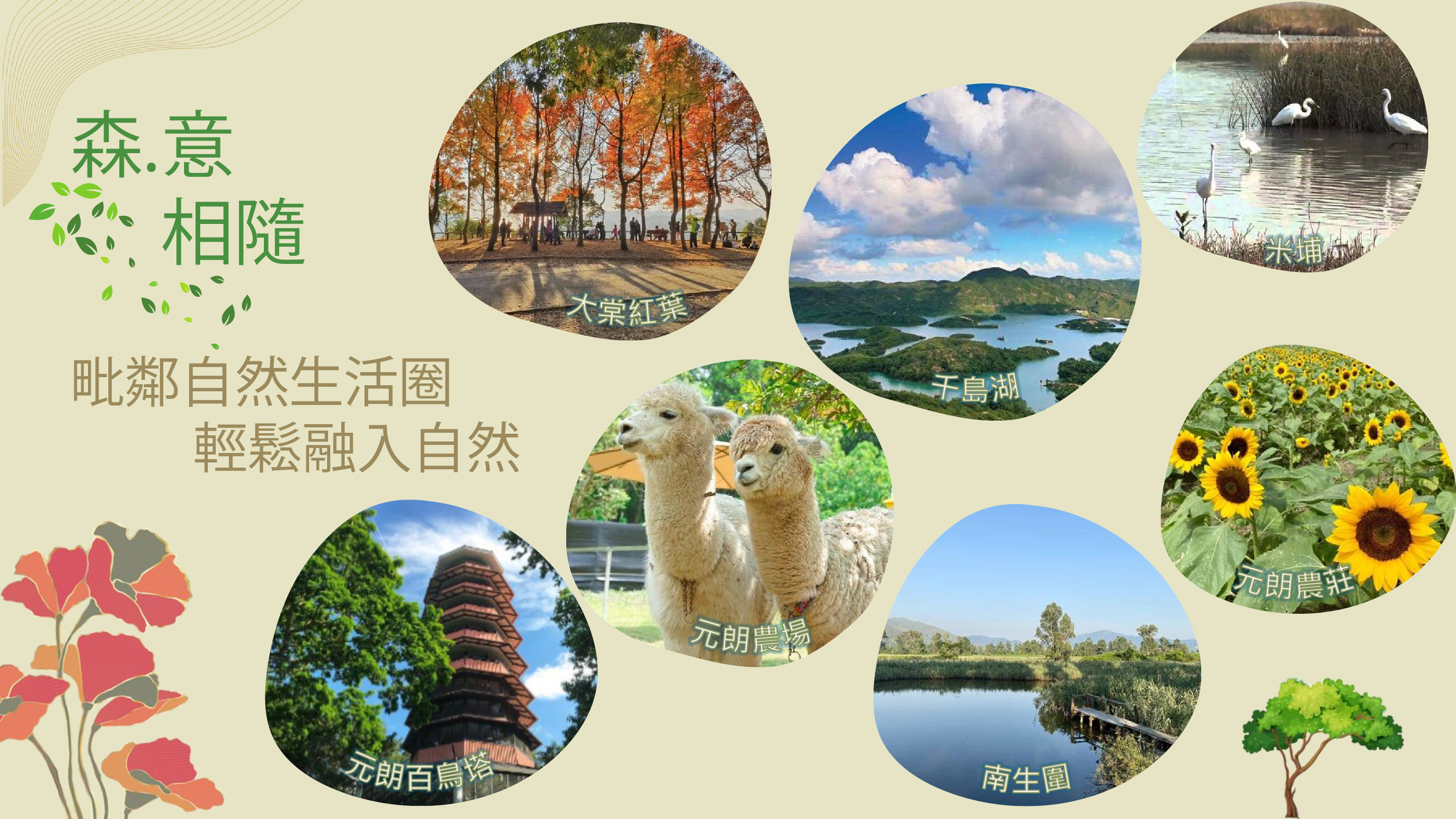 結合都市與自然,毗鄰大棠紅葉、百鳥塔、南生圍與米埔等自然景觀。